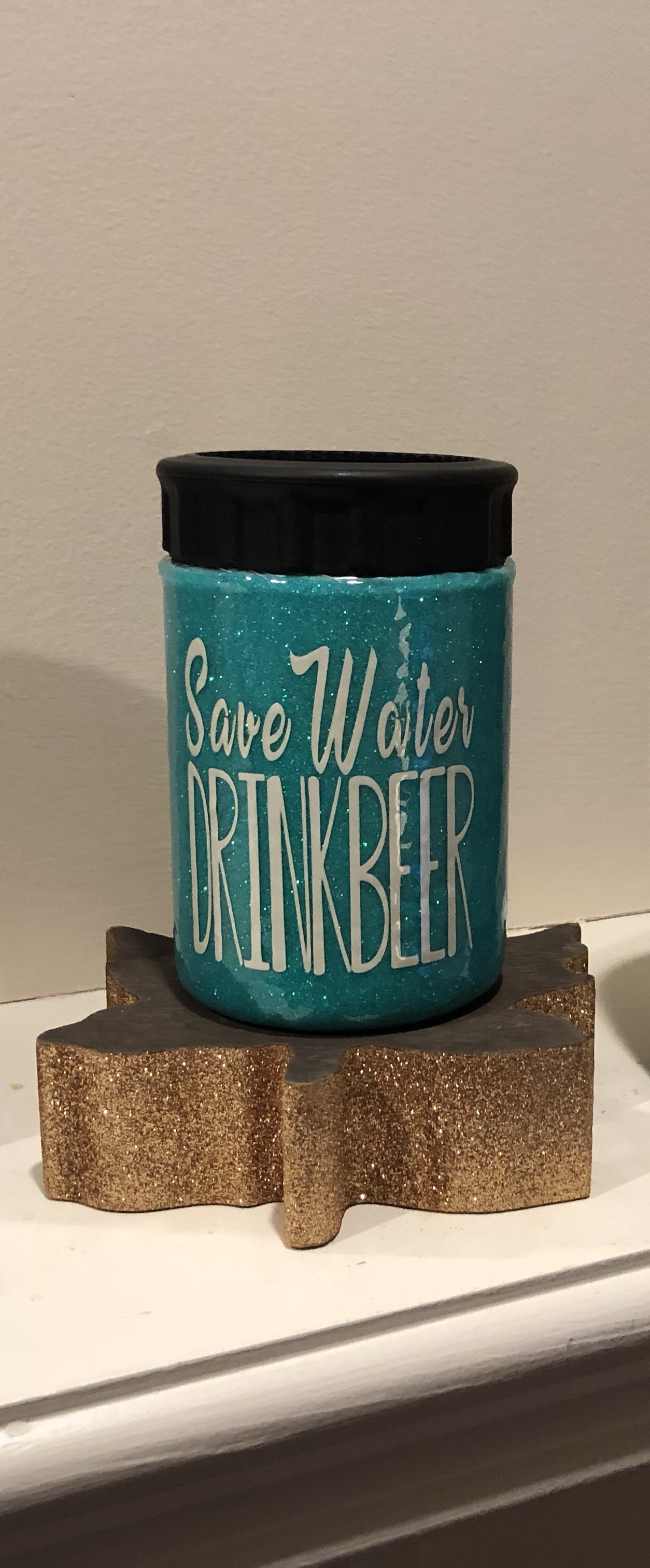 Also who doesn’t want a little pop of color to make that beer cute lol! Limited quantities available and the color of your cozy is completely up to you! Pictured is tourquouse glitter with a white decal.